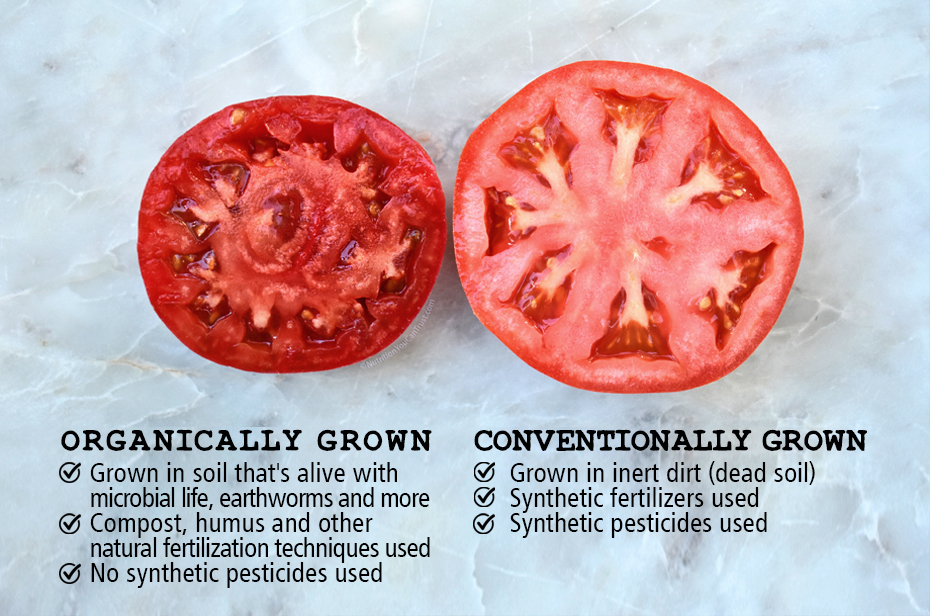 Most conventional tomatoes are grown in dead soil with synthetic fertilizers and toxic pesticides, and besides being nutritionally inferior + more toxic overall with pesticide residues, they are almost always flavor and taste inferior too.