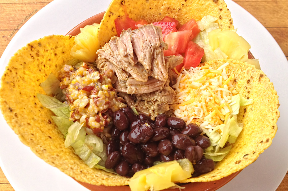 This is super simple and a fast way to feed yourself, your family or an entire party. If you have your pork shoulder prepped and done, just get all of your favorite taco-making additions and prep them for a platter or buffet-style serving display with your pulled pork as the centerpiece main ingredient dish.
