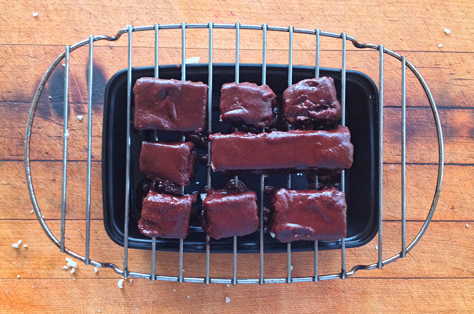9. For these, I spooned the chocolate sauce over each piece (above) and then flipped them over and spooned more chocolate. What you could also do is take some kitchen tongs and dip each piece in your sauce pan of chocolate sauce and place them on your rack to let them drip.