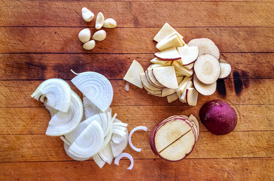 1 large sweet potato, sliced into 1/8th to 1/4th inch size pieces (see picture above)