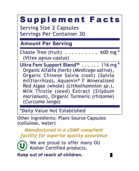 - Delivers a full-spectrum botanical formula, Ultra-Fem Support Blend™, for quality nutritional support*