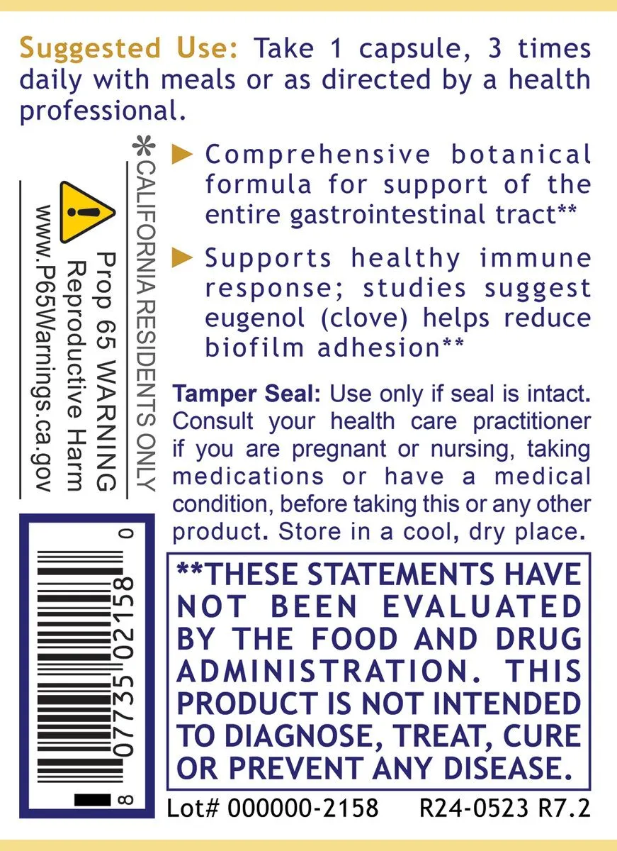 - A comprehensive botanical blend for support of the entire gastrointestinal tract*
