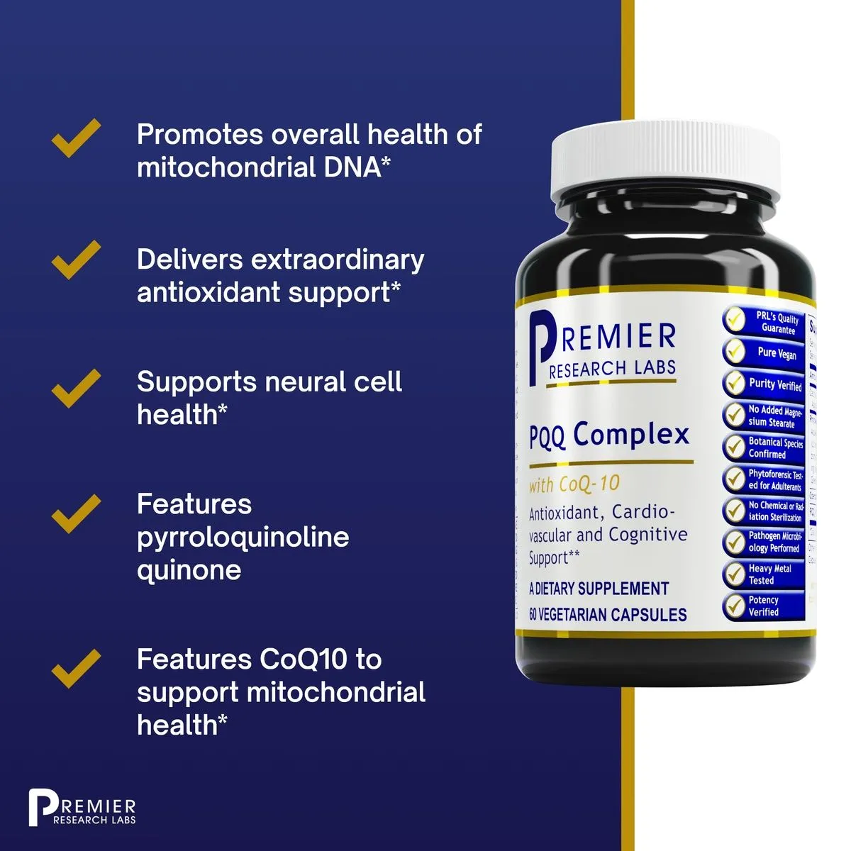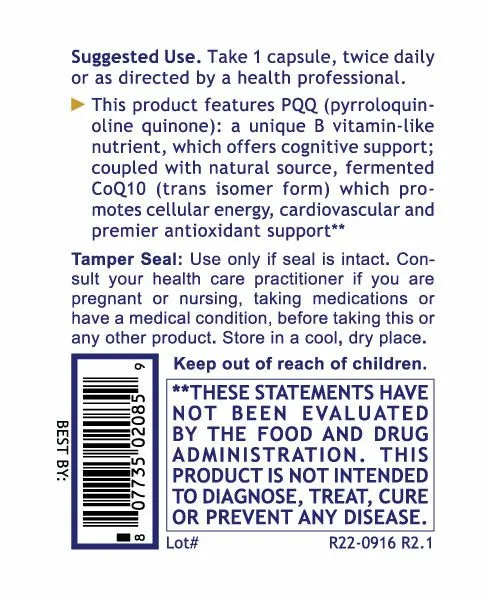 - Features PQQ (pyrroloquinoline quinone) and the fermented trans isomer form of CoQ10
