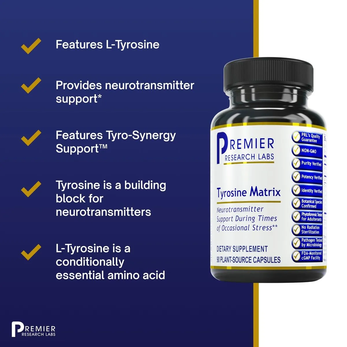 Tyrosine Matrix features the amino acid, tyrosine, in addition to Tyro- Synergy Supportâ„¢, an important botanical blend which provides broad spectrum phytochemical support.*