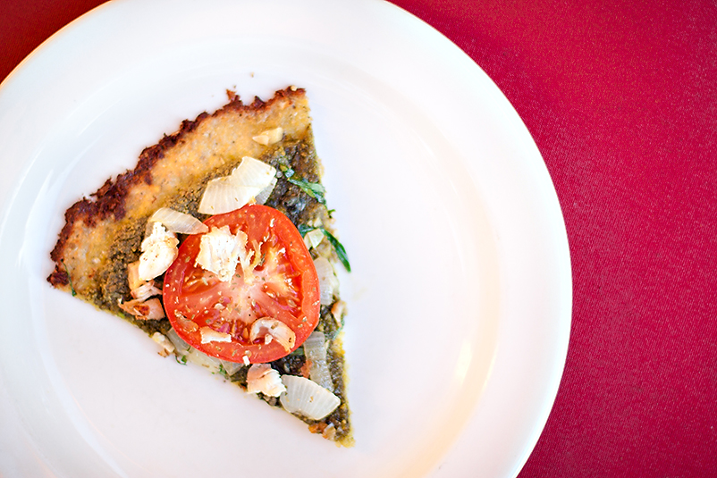 BBQ Chicken Pizza with Raw Pesto & Cauliflower-Herb Crust